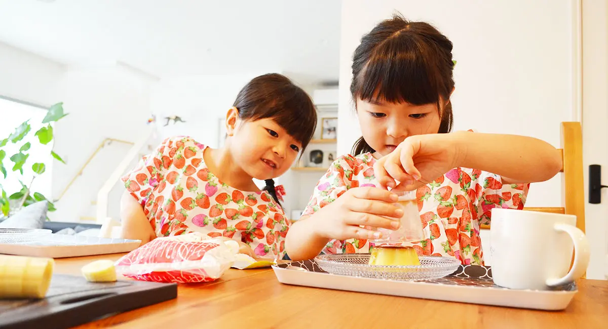 料理を作るだけでなく、食事の用意や片付けを手伝うことも大切です。「ご飯は左、汁物は右」などの知識を得たり、お箸の向きなど日本の伝統的な食文化を感じる場にもなります。 大人のお手伝いができた!という達成感もうまれ、よい食習慣がつきます。
